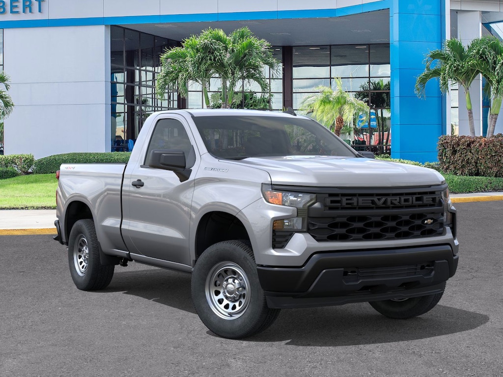 . Standard Suspension Package, Trailering Package (Hitch Guidance), WT Convenience Package (Deep-Tinted Glass and Electric Rear-Window Defogger), WT Value Package, 120-Volt Bed Mounted Power Outlet, 120-Volt Interior Power Outlet, 2 Speakers, 2-Speaker Audio System, 220 Amp Alternator, 3.42 Rear Axle Ratio, 3.5 Monochromatic Display Driver Info Center, 4-Way Manual Driver Seat Adjuster, 4-Wheel Disc Brakes, 40/20/40 Front Split Bench Seat, ABS brakes, Air Conditioning, Apple CarPlay/Android Auto, Auto High-beam Headlights, Auto-Locking Rear Differential, Automatic Emergency Braking, Black (Semi-Gloss) Front Bumper, Black (Semi-Gloss) Rear Bumper, Bluetooth® For Phone, Brake assist, Compass, Delay-off headlights, Driver door bin, Dual front impact airbags, Dual front side impact airbags, Electronic Cruise Control, Electronic Stability Control, Emergency communication system: OnStar, EZ Lift Power Lock and Release Tailgate, Following Distance Indicator, Forward Collision Alert, Front anti-roll bar, Front Center Armrest w/Storage, Front Frame-Mounted Black Recovery Hooks, Front Pedestrian Braking, Front reading lights, Front wheel independent suspension, Fully automatic headlights, HD Rear Vision Camera, Heated door mirrors, Heated Power-Adjustable Outside Mirrors, Illuminated entry, Inside Rearview Mirror with Tilt, Integrated Trailer Brake Controller, IntelliBeam Automatic High Beam on/Off, Lane Keep Assist with Lane Departure Warning, Locking Tailgate, Low tire pressure warning, Manual Tailgate Function with No EZ Lift, Manual Tilt Wheel Steering Column, Occupant sensing airbag, OnStar Services Capable, Outside temperature display, Overhead airbag, Overhead console, Panic alarm, Passenger door bin, Passenger vanity mirror, Power door mirrors, Power Front Windows with Driver Express Up/Down, Power steering, Power windows, Premium audio system: Chevrolet Infotainment 3, Radio data system, Radio: Chevrolet Infotainment 3 System, Rear reading lights, Rear step bumper, Remote Keyless Entry, Remote keyless entry, Rubberized-Vinyl Floor Covering, SiriusXM Delete, Solar Absorbing Tinted Glass, Speed control, Speed-sensing steering, Standard Tailgate, Tachometer, Teen Driver, Tilt steering wheel, Tire Pressure Monitoring System, Traction control, Trip computer, Variably intermittent wipers, Vinyl Seat Trim, Voltmeter, Wheels: 17 x 8 Ultra Silver Painted Steel, and Wi-Fi Hot Spot Capable All advertised sales prices include all available rebates, incentives, discounts, and price reductions. Tax, tag, title, license, Dealer Service Fee of $899.00, Electronic Filing Fee of $188.50, and $695.00 Lease Acquisition Fee if applicable (unless itemized above) are extra. Not available with special finance or lease offers. Although every reasonable effort has been made to ensure the accuracy of the information contained on this site, absolute accuracy cannot be guaranteed. This site, and all information and materials appearing on it, are presented to the user as is without warranty of any kind, either express or implied. All vehicles are subject to prior sale. All prices, specifications and availability subject to change without notice. Some vehicles may have upfits or accessories that are not yet added to the price as they are in process of completion. Contact dealer for most current information. The actual mileage of Demonstration (DEMO) and Courtesy Transportation vehicles is more than normal new retail units and may be more than what is shown in the Vehicle Description due to Price includes: $1000 - GM Bonus Cash. Exp. 03/02/2026 $3000 - GM Consumer Cash Program . Exp. 03/02/2026 GM is offering a consumer cash allowance good towards the purcha