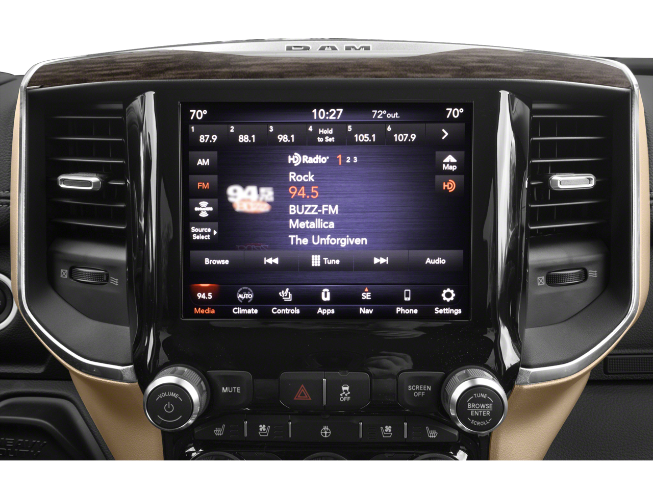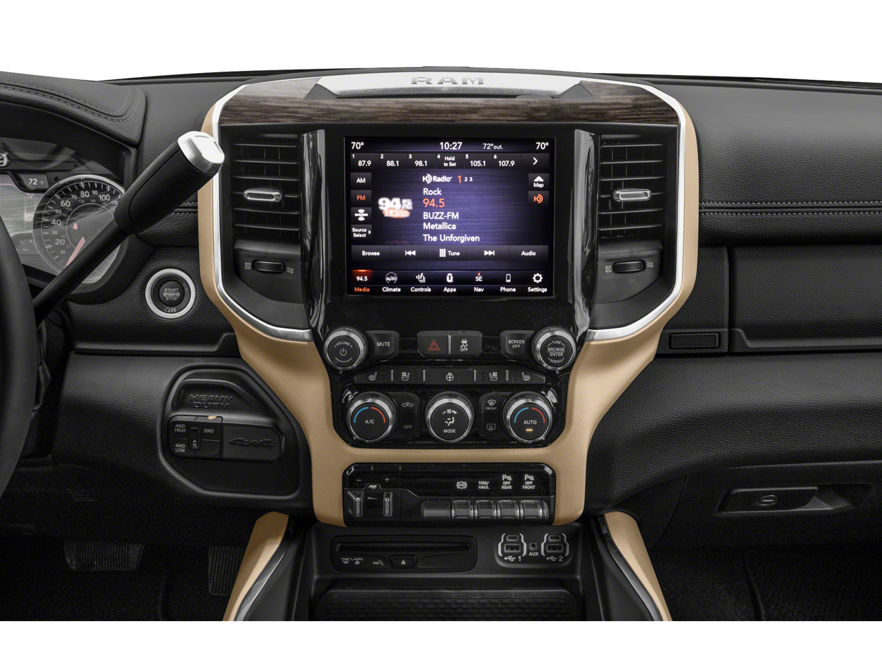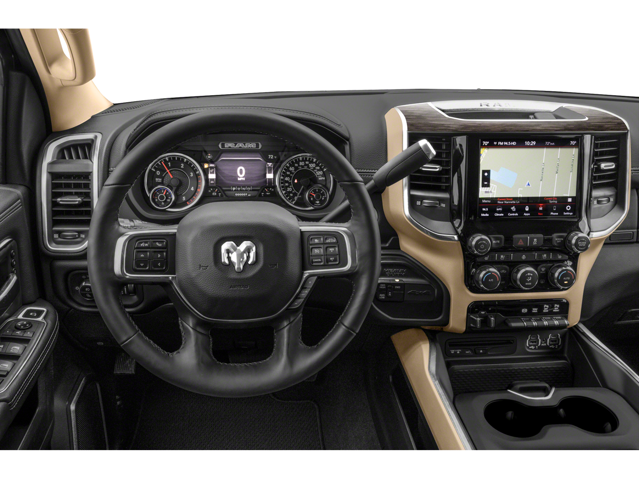 Features include: Bed Utility Group (Deployable Bed Step, LED Bed Lighting, and Spray In Bedliner), Level 1 Equipment Group (2 Way Rear Headrest Seat, 4 Way Front Headrests, 40/20/40 Split Bench Seat, 8.4 Touchscreen Display, Apple CarPlay, Auto-Dimming Rear-View Mirror, Center Hub, Center Stack Storage Drawer, Cluster 3.5 TFT Color Display, Dual Glove Boxes, Foam Bottle Insert (Door Trim Panel), Footwell Courtesy Lamp, For More Info, Call 800-643-2112, Front Armrest w/Cupholders, Front Center Seat Cushion Storage, Front Fog Lamps, Front Seat Back Map Pockets, Glove Box Lamp, Google Android Auto, GPS Antenna Input, Integrated Center Stack Radio, Integrated Voice Command w/Bluetooth®, Leather Wrapped Steering Wheel, Locking Lower Glove Box, Manual Adjust 4-Way Front Passenger Seat, Power 2-Way Driver Lumbar Adjust, Power Adjust 8-Way Driver Seat, Power Adjustable Folding Heated Black Tow Mirrors, Power Adjustable Pedals, Power-Folding Mirrors, Premium Cloth 40/20/40 Bench Seat, Radio: Uconnect 4 w/8.4 Display, Rear 60/40 Folding Seat, Rear Dome w/On/Off Switch Lamp, SiriusXM Radio Service, SiriusXM Satellite Radio, Steering Wheel Mounted Audio Controls, Sun Visors w/Illuminated Vanity Mirrors, Universal Garage Door Opener, USB Host Flip, and Wheels: 18 x 8.0 Polished Aluminum), Quick Order Package 21Z Big Horn, Towing Technology Group (CTR Stop Lamp w/Cargo View Camera, Mirror-Mounted Aux Reverse Lamps, Power Adjustable Convex Aux Mirrors, Premium Power Black Tow Mirrors w/Convex Spotter, Surround View Camera System, and Trailer Reverse Guidance), 220 Amp Alternator, 3.73 Axle Ratio, 4-Wheel Disc Brakes, 5th Wheel/Gooseneck Towing Prep Group, 6 Speakers, 9 Alpine Speakers w/Subwoofer, ABS brakes, Active Noise Control System, Air Conditioning, AM/FM radio, Blind Spot & Cross Path Detection, Brake assist, Bumpers: chrome, Clearance Lamps, Cloth 40/20/40 Bench Seat, Compass, Delay-off headlights, Driver door bin, Dual Alternators Rated At 440 Amps, Dual front impact airbags, Dual front side impact airbags, Electronic Stability Control, Electronically Controlled Throttle, Front anti-roll bar, Front Bumper Sight Shields, Front Center Armrest w/Storage, Front reading lights, Fully automatic headlights, Heated door mirrors, I/P Mounted Auxiliary Switches, Illuminated entry, LED Tail Lamps, Low tire pressure warning, Manufacturer's Statement of Origin, Occupant sensing airbag, Outside temperature display, Overhead airbag, Overhead console, Panic alarm, ParkView Rear Back-Up Camera, Passenger door bin, Passenger vanity mirror, Power door mirrors, Power steering, Power windows, Radio data system, Radio: Uconnect 3 w/5 Display, Rear seat center armrest, Rear step bumper, Rear Wheelhouse Liners, Remote keyless entry, Speed control, Split folding rear seat, Tachometer, Tilt steering wheel, Tip Start, Traction control, Trailer Camera Wiring w/No Camera, Trailer Tire Pressure Monitoring System, Trip computer, Turn signal indicator mirrors, Variably intermittent wipers, Voltmeter, and Wheels: 18 x 8.0 Steel Chrome Clad.