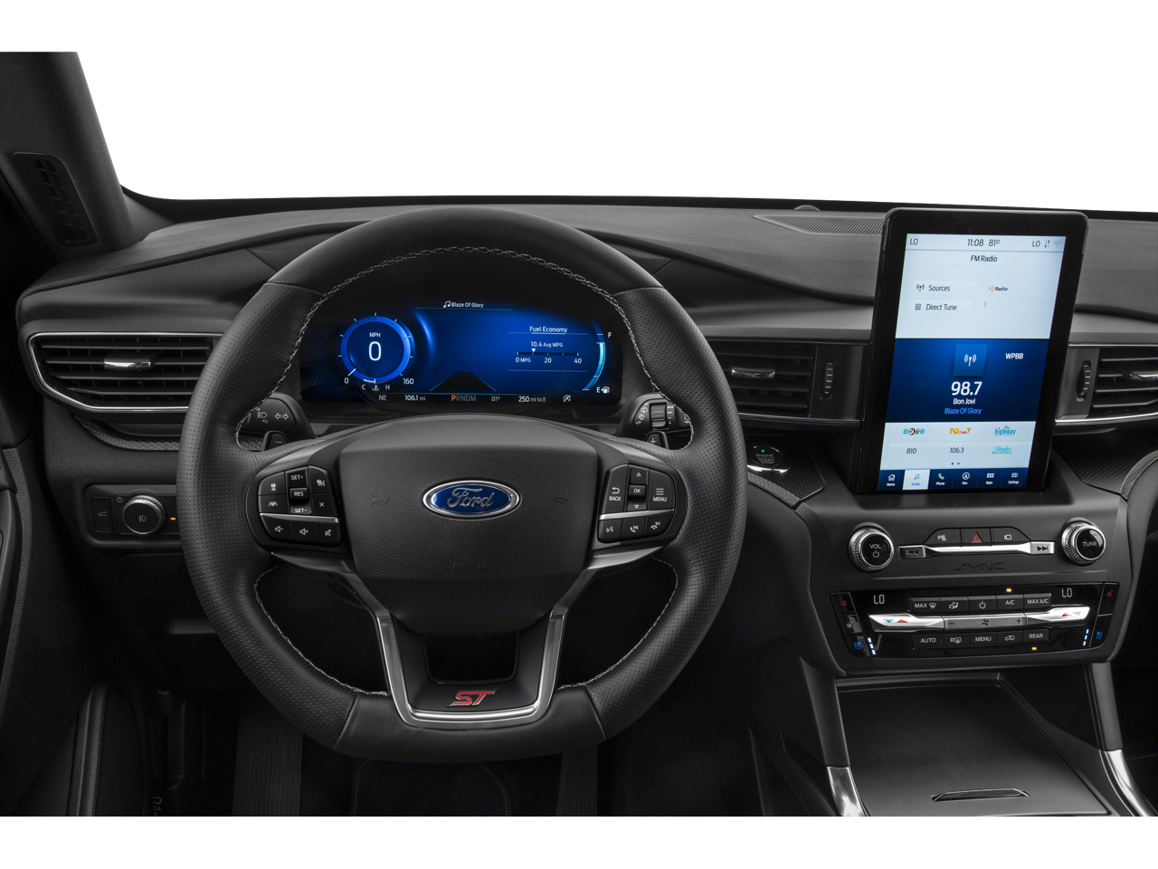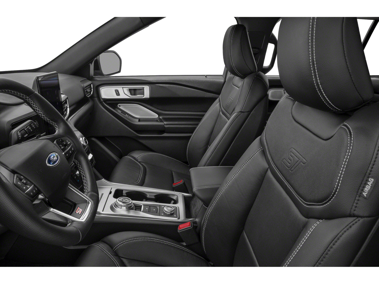 Features include: Equipment Group 401A, Ford Co-Pilot360 Assist+ (Evasive Steering Assist, Intelligent Adaptive Cruise Control, Speed Sign Recognition, and Voice-Activated Touchscreen Navigation System), ST High Package (110V/150W AC Power Outlet, 360-Degree Camera w/Split View, Auto-Dimming Rearview Mirror (Interior), FordPass Connect, Front Parking Sensors, Front Rain-Sensing Wipers, Hands-Free Foot-Activated Liftgate, Memory Driver's Seat, Power Tilt/Telescoping Steering Column, Radio: B&O Sound System by Bang & Olufsen, Reverse Brake Assist, Second Row Heated Seats, Sideview Mirrors w/Gloss Black Caps, SYNC 3 Communications & Entertainment System, Third Row PowerFold (Folds Flat), Universal Garage Door Opener (UGDO), and Wireless Charging Pad), ST Street Pack (Performance Front & Rear Brakes and Wheels: 21 Aluminum), Technology Package (10.1 LCD Capacitive Portrait Touchscreen and 2 Additional Speakers), 1st Row Heated Seats, 20 Machined Aluminum w/Painted Pockets Wheels, 3.58 Non-Limited-Slip Rear Axle Ratio, 3rd row seats: bench, 4-Wheel Disc Brakes, 4G LTE Wi-Fi Hotspot Removal Credit, 6 Speakers, ABS brakes, Air Conditioning, Alloy wheels, AM/FM radio: SiriusXM, AM/FM Stereo, Auto High-beam Headlights, Automatic temperature control, Black Roof-Rack Side Rails, Brake assist, Bumpers: body-color, Compass, Delay-off headlights, Driver door bin, Driver vanity mirror, Dual front impact airbags, Dual front side impact airbags, Electronic Stability Control, Emergency communication system: SYNC 3 911 Assist, Exterior Parking Camera Rear, Four wheel independent suspension, Front anti-roll bar, Front Bucket Seats, Front Center Armrest, Front dual zone A/C, Front fog lights, Front reading lights, Fully automatic headlights, Hands-Free Liftgate Delete, Heated door mirrors, Heated front seats, Heated steering wheel, Illuminated entry, Knee airbag, Leather steering wheel, Low tire pressure warning, Memory seat, Occupant sensing airbag, Outside temperature display, Overhead airbag, Overhead console, Panic alarm, Passenger door bin, Passenger vanity mirror, Power door mirrors, Power driver seat, Power Liftgate, Power passenger seat, Power steering, Power windows, Rear air conditioning, Rear anti-roll bar, Rear reading lights, Rear window defroster, Rear window wiper, Remote keyless entry, Security system, SelectShift Capability w/Paddle Shifters, Speed control, Speed-sensing steering, Speed-Sensitive Wipers, Split folding rear seat, Spoiler, Sport steering wheel, Steering wheel mounted audio controls, SYNC 3/Apple CarPlay/Android Auto, Tachometer, Telescoping steering wheel, Tilt steering wheel, Traction control, Trip computer, Twin Panel Moonroof, Variably intermittent wipers, and Ventilated front seats.