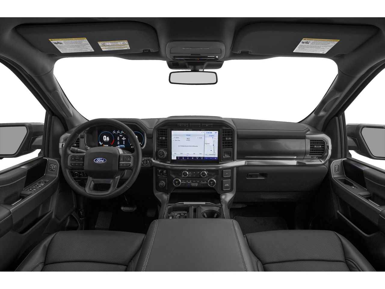 Features include: Bed Utility Package (BoxLink, LED Box Lighting, Power Tailgate, and Tailgate Step w/Tailgate Work Surface), Equipment Group 501A Mid (Onboard 400W Outlet, Radio: B&O Sound System by Bang & Olufsen, and Universal Garage Door Opener), Trailer Tow Package (Class IV Trailer Hitch Receiver, Integrated Trailer Brake Controller, and Pro Trailer Backup Assist), 18 Machined-Aluminum Wheels, 3.31 Axle Ratio, 360 Degree Camera, 4-Wheel Disc Brakes, 7 Speakers, ABS brakes, Adjustable pedals, Air Conditioning, Alloy wheels, AM/FM radio: SiriusXM with 360L, Auto High-beam Headlights, Auto Start-Stop Removal, Auto-dimming door mirrors, Auto-dimming Rear-View mirror, Automatic temperature control, Brake assist, Bumpers: chrome, Compass, Connected Navigation & SiriusXM w/360L Removal, Delay-off headlights, Driver door bin, Driver vanity mirror, Dual front impact airbags, Dual front side impact airbags, Electronic Stability Control, Emergency communication system: SYNC 4 911 Assist, Exterior Parking Camera Rear, Front anti-roll bar, Front Center Armrest w/Storage, Front dual zone A/C, Front fog lights, Front reading lights, Front wheel independent suspension, Fully automatic headlights, Heated door mirrors, Heated front seats, Illuminated entry, Interior Work Surface, Leather-Trimmed 40/20/40 Front Seat, LED Sideview Mirror Spotlights, Low tire pressure warning, Memory seat, Occupant sensing airbag, Outside temperature display, Overhead airbag, Overhead console, Panic alarm, Passenger door bin, Passenger vanity mirror, Pedal memory, Power door mirrors, Power driver seat, Power passenger seat, Power steering, Power windows, Pro Power Onboard - 2KW, Radio data system, Radio: AM/FM SiriusXM w/360L, Rear reading lights, Rear seat center armrest, Rear step bumper, Rear window defroster, Remote keyless entry, Security system, Speed control, Speed-sensing steering, Split folding rear seat, Steering wheel mounted audio controls, SYNC 4 w/Enhanced Voice Recognition, Tachometer, Telescoping steering wheel, Tilt steering wheel, Traction control, Trip computer, Turn signal indicator mirrors, Twin Panel Moonroof, Variably intermittent wipers, Ventilated front seats, Voltmeter, and Wireless Charging Pad.
