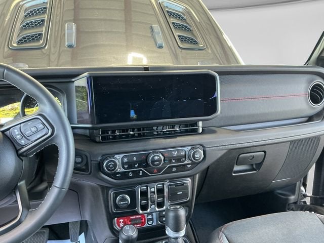 The Wrangler Rubicon's distinctive style is further accentuated by the Granite Crystal Metallic Clearcoat exterior, complemented by a Gray interior. With a host of advanced features, including Apple CarPlay, Android Auto, and a 12.3 Uconnect 5 display, you'll stay connected and entertained on every journey.