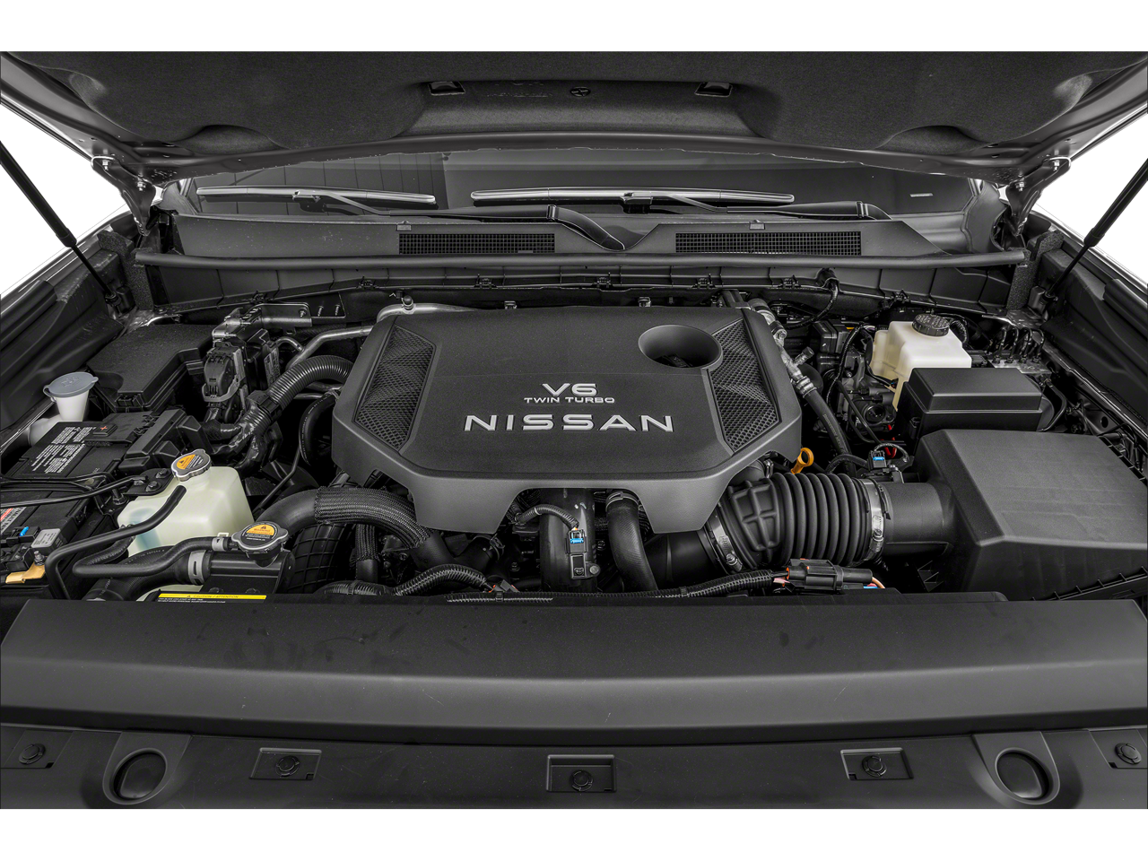 Features include: Captain's Chair Seat Package (2nd Row Center Console with Two Cupholders, 2nd Row Outboard Captain's Chairs with Armrests, and EZ Flex Second Row Seating System with One Touch Release), PRO-4X Premium Package with Captain's Chair (Biometric Cooling, Climate Controlled Heated and Ventilated Front Seats, Hands-Free Power Liftgate, Heated 2nd Row Seats, in-Car Camera, Intelligent Dash Cam, Intelligent Rear View Mirror (I-RVM), and Panoramic Moonroof), 12 Speakers, 3rd row seats: split-bench, 4-Wheel Disc Brakes, ABS brakes, Adaptive suspension, Air Conditioning, Alloy wheels, AM/FM radio: SiriusXM w/360L, Anti-whiplash front head restraints, Apple CarPlay/Android Auto, Auto High-beam Headlights, Auto tilt-away steering wheel, Auto-dimming door mirrors, Auto-dimming Rear-View mirror, Auto-leveling suspension, Automatic temperature control, Brake assist, Bumpers: body-color, Compass, Cross Bars, Delay-off headlights, Driver door bin, Driver vanity mirror, Dual front impact airbags, Dual front side impact airbags, Electronic Stability Control, Emergency communication system: NissanConnect Services, Four wheel independent suspension, Front anti-roll bar, Front Bucket Seats, Front Center Armrest, Front dual zone A/C, Front fog lights, Front reading lights, Front Tow Hooks, Fully automatic headlights, Garage door transmitter: myQ Connected Garage, Genuine wood dashboard insert, Heated door mirrors, Heated Front Bucket Seats, Heated front seats, Heated steering wheel, HVAC memory, Illuminated entry, Illuminated Kick Plates, Knee airbag, Leather steering wheel, Low tire pressure warning, Memory seat, Navigation system: Google Maps, Occupant sensing airbag, Outside temperature display, Overhead airbag, Overhead console, Panic alarm, Passenger door bin, Passenger vanity mirror, Power door mirrors, Power driver seat, Power Liftgate, Power passenger seat, Power steering, Power windows, Premium Paint and 2-Tone Roof, PRO-4X Carpeted Floor Mats with Captain's Chair, Pro-4x Leather Quilted Insert Seat Trim, PRO-4X Mud Guards, Radio: NissanConnect with SiriusXM 360L, Rain sensing wipers, Rear air conditioning, Rear anti-roll bar, Rear Bumper Protector, Rear reading lights, Rear seat center armrest, Rear window defroster, Rear window wiper, Reclining 3rd row seat, Remote keyless entry, Security system, Speed control, Speed-sensing steering, Speed-Sensitive Wipers, Split folding rear seat, Spoiler, Steering wheel memory, Steering wheel mounted audio controls, Tachometer, Telescoping steering wheel, Tilt steering wheel, Traction control, Trip computer, Turn signal indicator mirrors, Variably intermittent wipers, Voltmeter, and Wheels: 20 x 8.5J Painted PRO-4X Alloy.