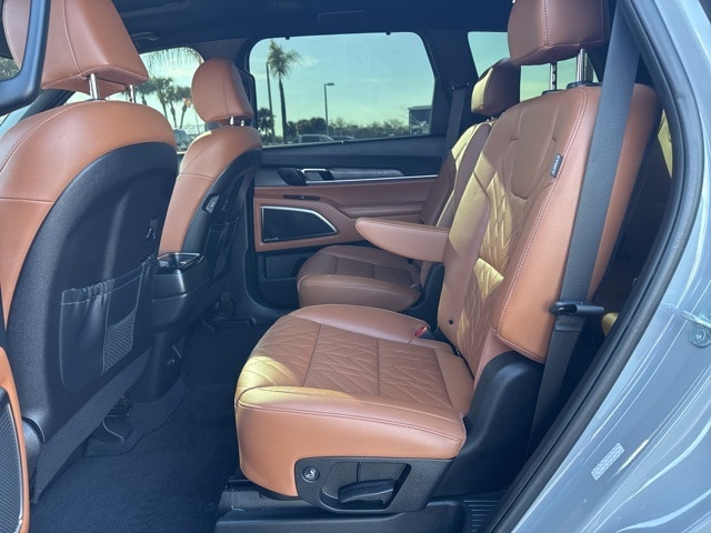 Features include: Terracotta Interior Color Package, 10 Speakers, 3.648 Axle Ratio, 3rd row seats: split-bench, 4-Wheel Disc Brakes, ABS brakes, Air Conditioning, Alloy wheels, AM/FM radio: SiriusXM, Apple CarPlay & Android Auto, Auto High-beam Headlights, Auto-dimming Rear-View mirror, Auto-leveling suspension, Automatic temperature control, Brake assist, Bumpers: body-color, Cargo Cover, Compass, Cross Bars X-Line, Delay-off headlights, Driver door bin, Driver vanity mirror, Dual front impact airbags, Dual front side impact airbags, Electronic Stability Control, Emergency communication system: 911 Connect, Exterior Parking Camera Rear, Four wheel independent suspension, Front anti-roll bar, Front Bucket Seats, Front Center Armrest, Front dual zone A/C, Front fog lights, Front reading lights, Fully automatic headlights, Garage door transmitter: HomeLink, harman/kardon® Speakers, Heated & Ventilated Front Bucket Seats, Heated door mirrors, Heated front seats, Heated steering wheel, Illuminated entry, Knee airbag, Leather Seat Trim, Leather Shift Knob, Leather steering wheel, Low tire pressure warning, Memory seat, Navigation System, Occupant sensing airbag, Outside temperature display, Overhead airbag, Overhead console, Panic alarm, Passenger door bin, Passenger vanity mirror, Power door mirrors, Power driver seat, Power Liftgate, Power moonroof, Power passenger seat, Power steering, Power windows, Radio data system, Radio: AM/FM Harman Kardon Audio System, Rear air conditioning, Rear anti-roll bar, Rear audio controls, Rear reading lights, Rear side impact airbag, Rear window defroster, Rear window wiper, Reclining 3rd row seat, Remote keyless entry, Roof rack: rails only, Security system, Side Step Bars, Smart Key w/ Push Button and Remote Start, Speed control, Speed-sensing steering, Split folding rear seat, Spoiler, Steering wheel mounted audio controls, Tachometer, Telescoping steering wheel, Tilt steering wheel, Traction control, Trip computer, Turn signal indicator mirrors, Variably intermittent wipers, Ventilated front seats, and Wheels: 20" x 7.5" Black Finish X-LINE Exclusive.